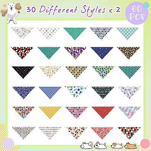 60 Pcs Set: you’re going to get 60 pieces of pet bandanas in 30 diverse styles, sufficient quantities and rich styles to meet your daily use and replacement needs, good for dog owner and pet groomer