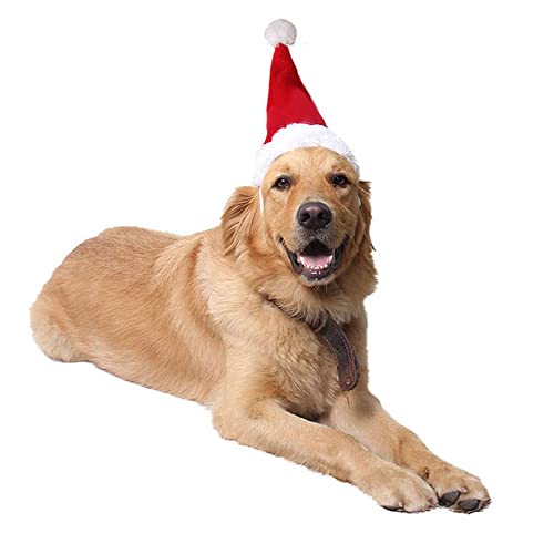 Made from short plush, softly stuffed 3D Santa hat with elastic band, comfy on your pet to wear it
