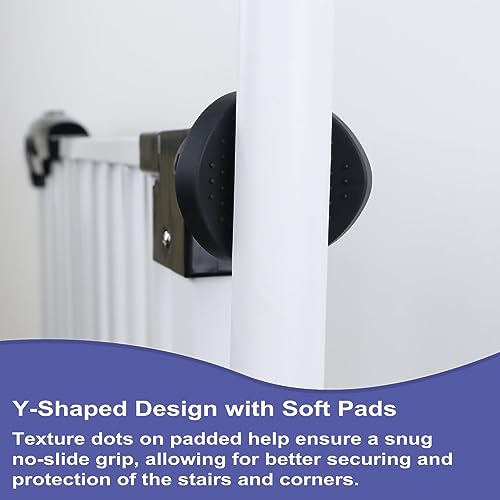 Stair Gate Banister Adapter: The Y-shaped design with soft pads is used to grip the banisters at the top or bottom of the stairs, in addition to the corners, for simple banister-to-banister and banister-to-wall installation. Texture dots on padded end pieces lend a hand ensure a snug no-slide grip, bearing in mind better securing and protection of the stairs.