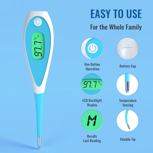 Accurate Measurement: This digital thermometer utilizes the up to date advanced temperature sensing probe to appropriately detect fever. It also features a beeping alarm, memory display, auto shut-off function, and will also be easily switched between ℉ and ℃.