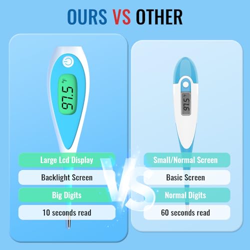 LCD Screen Display: This oral thermometer is clear and easy to read with backlit screen display. Green color indicates normal temperature, yellow color indicates elevated temperature and red color indicates over the top temperature.
