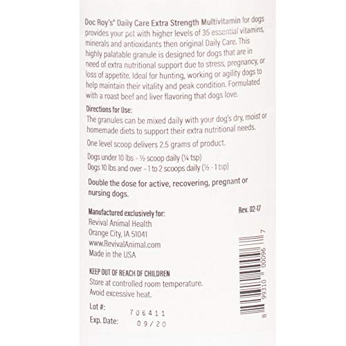EXTRA – contain higher vitamin, mineral, and fatty acid levels than Doc Roy’s Day-to-day Maintain extra improve and care