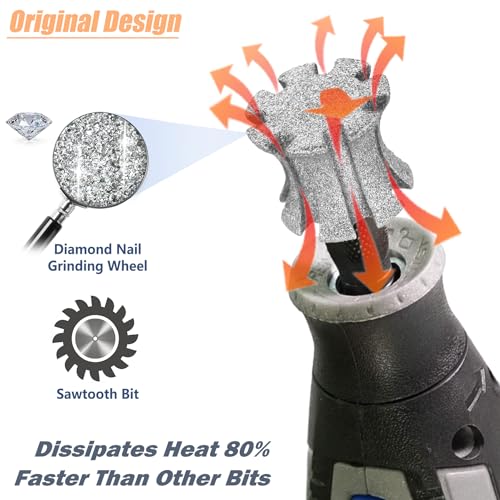 𝑲𝑬𝑬𝑷 𝑾𝑶𝑹𝑲𝑰𝑵𝑮 – The dog nail grinder bits sawtooth tips keep the nail dust from clogging up the diamond surface of pet nail grinder bit, so no wish to steadily clean the dust when pet claw care, it is vitally suitable FOR ANXIOUS DOGS. EFFICIENT & SAFE, SAVE YOU TIME!
