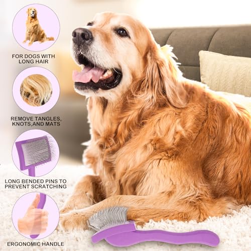 ✔️ SUITABLE GOR MULTI-BREED DOGS & CATS – Anrundar dog & cat Slicker brush is best for combing medium to long & curly coats, including poodles, Goldendoodles, Labradors, pit bulls, Pomeranians, Collies, Samoyeds & more than a few cat breeds with soft, fluffy coats.
