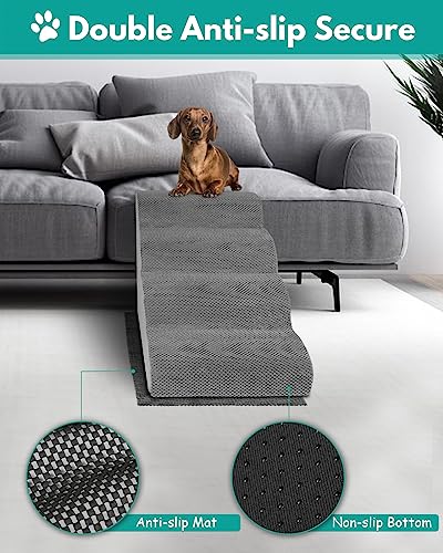 【Dual Anti-Slip with Anti-Slip Mat】: Petbank dog ramp comes with a non-slip mat, and it can give double protection for pet stairs with the rubber dots on the bottom of the cover. Keeping the dog ramp in place and preventing your loved one pets from slipping whilst walking up and down, ensuring their safety.
