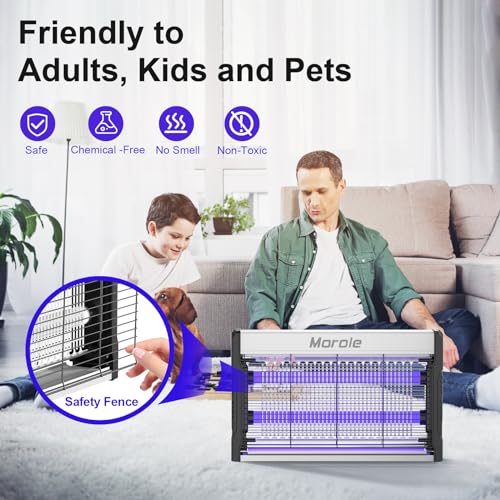 𝐄𝐟𝐟𝐢𝐜𝐢𝐞𝐧𝐭 𝐁𝐮𝐠 𝐙𝐚𝐩𝐩𝐞𝐫: Morole bug zapper is equipped with two insect-attracting LEDs, which effectively attracts mosquitoes, flies, moths, bugs and other flying insects. The grid voltage is 3200V, which can more effectively electrocute flying insects naturally attracted by the light and kill them immediately. Perfect for courtyards, office, warehouse.