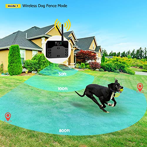 AMAZING WIRELESS DOG FENCE COLLAR!: Electric dog fence and training works very well; Under electirc fence mode, system will customize a cordless radial shaped boundary with 16 levels of distance, signal range from 30ft to 800ft; Rivulet wireless dog fence system is the latest version for 2023, The use of the latest upgraded 2.4GHz signal source, electric dog fence shock collar is more accurate and stable than other old WIFI signal transmission, which helps train your pet and shape good safety habits