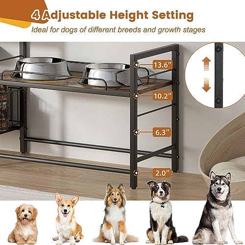 🐾【Adjustable Height Dog Bowl Stand】The adjustable dog bowl stand ensures your dog to eat at the proper height and give a boost to their dining experience from puppy to senior, perfect for dogs of all sizes and growth stages. With 4 height options (2.0 inch, 6.3 inch, 10.2 inch, 13.6 inch), the dog food stand effectively helps to promote digestion and reduce strain on your pets’ neck, spine and joints, protecting their health.