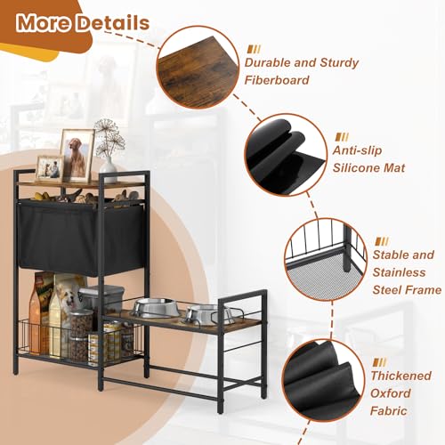 🐾【All in One Elevated Dog Bowls Stand with Storage】This raised dog bowl stand consists of a dog feeding station, a countertop, a metal storage basket and a pull-out dog toy bin that provide ample room to store the dog supplies in a unified location, keeping the dog food, cans, toys, jackets and other dog essentials together and easy to take up. The combination of the dog bowl stand and dog storage organizer is truly convenient to keep everything organized and maximize using limited space.