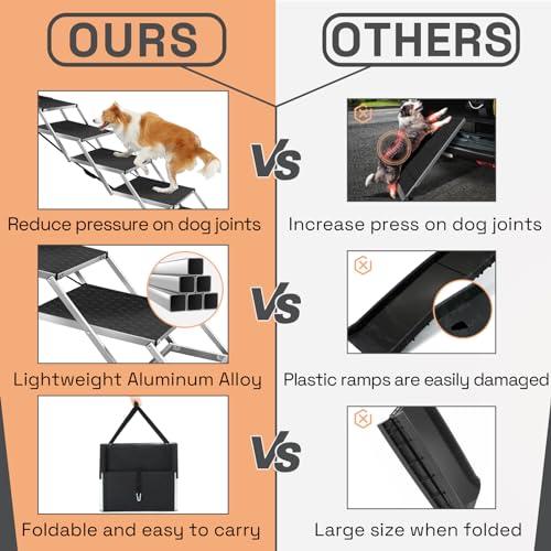 •   Extra-Wide-Dog-Car-Ramp-Portable-Dog-Car-Stair-for-Large-Dogs-Upgrade-Lightweight-Aluminum-Foldable-Pet-Ramp-with-Non-Slip-Surface-Dog-Steps-for-Cars-SUV-Trucks-5-Steps