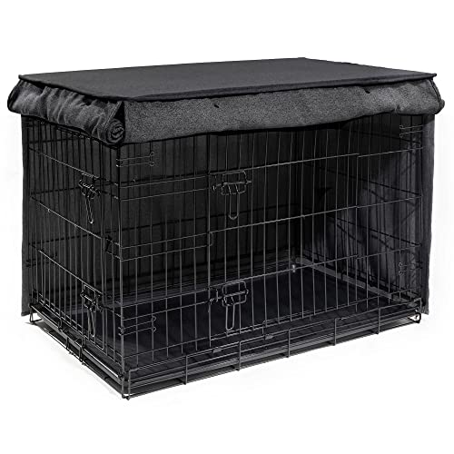 Dog kennel cover/dog crate cover with roller sun shades to regulate visibility and ventilation and large opening allows easy get admission to to front and side doors.