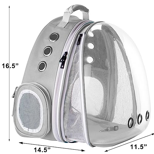 FRONT Extension Cat Carrier Backpack for LARGE and Fat Cats as much as 20 POUNDS. 2022 Upgraded Detachable Bubble Window Design. This cat bubble backpack carrier increases your pet’s visual space by the use of front transparent hard shell, Also the front extra 4″ extension FIXS VENTILATION & HOT issues vs. non-extension version.