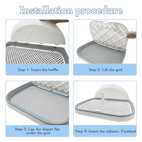 【INTIMATE DESIGN】 This toilet training rack has a grid mat, fence splash wall and movable posts, can quickly penetrate pet urine, directly into the urine tray, does not leak, will not dirty the floor and furniture, but also can keep the surface dry and clean, to bring your pet a good experience. Create a dry and comfortable living environment.