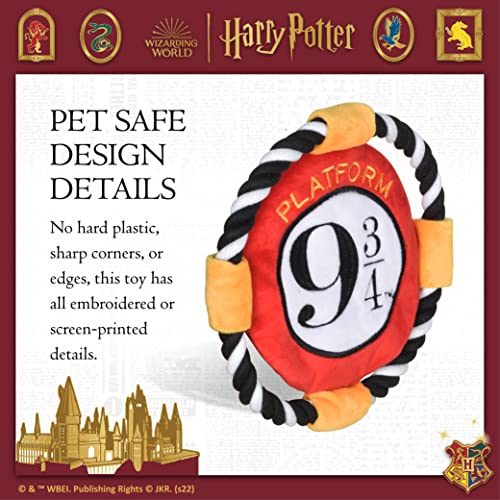 All aboard to Hogwarts! Harry Potter fans will delight over this Harry Potter Platform 9 ¾ Frisbee Toy for dogs! This enchanting toy will stimulate hours of magical fun as your pet plays with this Harry Potter dog toy. This Harry Potter dog toy features a multisensory experience, with a plush center and a rope frame that makes it fun for cuddling, chewing, or tossing. Protected and free from hard plastic parts, it is a great lightweight toy for light to medium chewers who love to carry, toss, and catch. As with any dog toys, at all times supervise your pet when they play with dog toys. Be sure to take a look at all our plush dog toys for all dogs in a number of styles and characters for your furry fandom friends! Your pet will love playing with these dog toys from your favorite Harry Potter movies. That is an official Harry Potter licensed dog toy design. This fun dog toy is sure to enchant the home of any Harry Potter fan. The Platform 9 ¾ Rope Frisbee Toy will delight both you and your fur-baby! Our dog toys designed with your favorite Harry Potter movies in mind are at all times a hit – from plush characters to Hogwarts house apparel! Your pet will love playing with these dog toys from your favorite Harry Potter movies. Take a look at the full selection of Harry Potter-themed dog toys: apparel, toys, accessories, leashes, collars, and home décor items as well! These also make great gifts for Harry Potter fans and their pets. Your satisfaction is our priority – contact us at info@fetch4pets.com with any questions or feedback on this item.