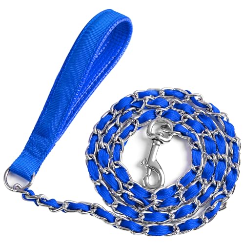 HEAVY DUTY DOG CHAIN LEASH: Our chain dog leash is made of top quality metal chain 3.0mm/3.50mm in diameter with pull force 450lbs+. Metal chain with 1000D+ nylon outer layer and connected via welded O-ring, this care for is durable and will not fell off the chain leash.