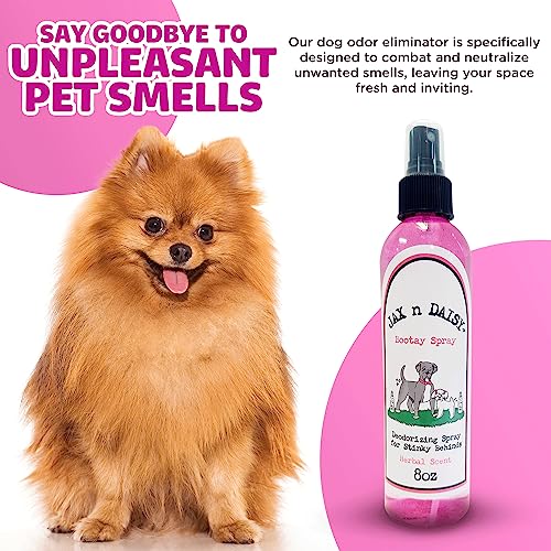 Jax n Daisy Dog Bootay Spray is a pet perfume spray designed to maintain a dog’s bottom hygiene and keep watch over odor. The spray is made with all-natural ingredients to offer protection to the dog’s delicate skin. It offers a quick and easy application, making it convenient for pet owners. The product is suitable for all dog breeds and sizes and is go back and forth-friendly, making it ideal for use on the go.
