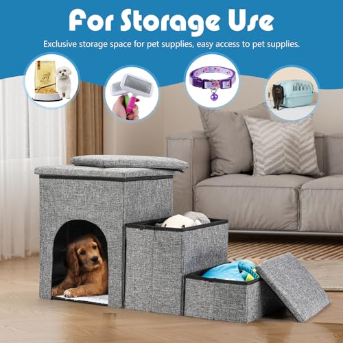 【MULTIFUNCTIONAL PET STEPS】The pet stairs for small dogs can not only be used as climbing tools for high beds and couches, but also storage boxes for pet toys, grooming tools,and the like. If the pet stairs for high beds is not in use, you’ll disassmble it easily without taking over space. But even so, condo with sherpa cushion on the highest stair would be a warm nest for your pets. All in all, your dog and cat will find an easy life on the stairs.