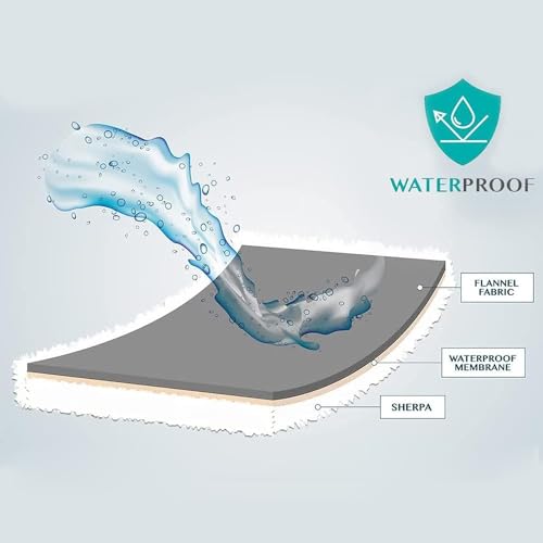 🐶3in1 Waterproof: 220GSM Solid Flannel+ Waterproof Membrane+Sherpa 180GSM,Flannel side and Sherpa side isn’t waterproof but no liquid will make it through to the other side. Never worry about your little friend wet the sofa or bed.