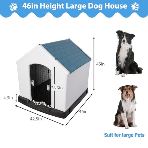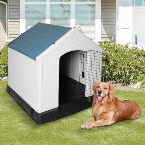 🐶Water resistant Dog Kennel — Elevated floor prevent rain get into dog house; plastic roof and body keep from leaking and offer protection to your dog from rain.