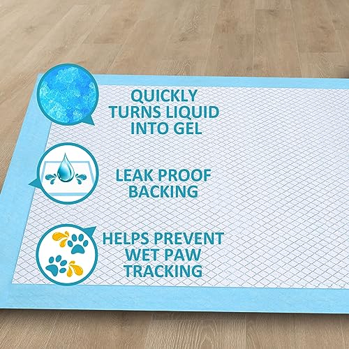Leak-Proof Design: The bottom of the training pad is a waterproof PE film. After absorbing, water won’t penetrate to the bottom, which prevents leakage and damage on your floor or carpet.