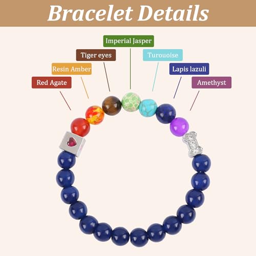 【Quality Materials】Our pet memorial bracelet is carefully crafted the use of 14 blue beads,7 rainbow-colored beads and alloy, showcasing their inherent beauty and ensuring long-lasting durability. The bone and the heart bead are thoughtfully designed, adding an elegant touch to the dog memorial bracelet and serving as enduring symbols of the deep love shared between pet and owner.