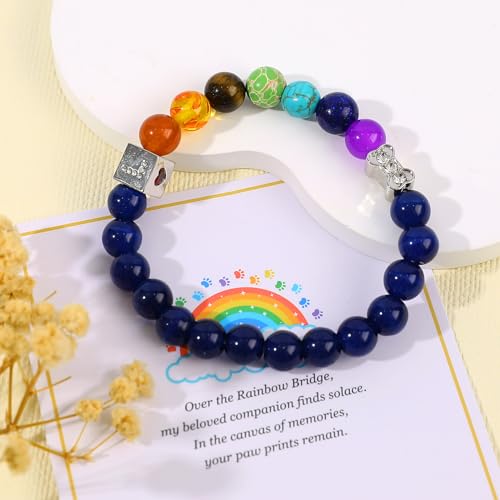 【Symbolic Design】Inspired by the imagery of the Rainbow Bridge, adorned with 7 rainbow-colored beads symbolizing hope and joy after loss.Commemorate the life of your loved one pet with this rainbow bridge dog memorial gifts, offering comfort and solace in times of loss.