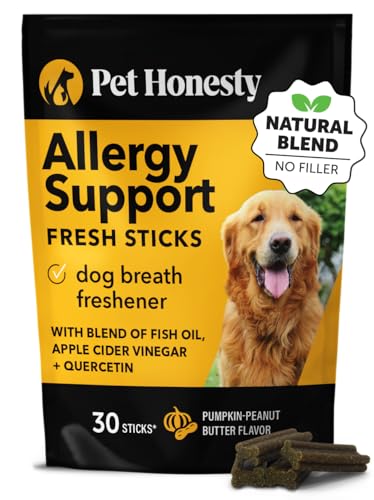 Vet-really helpful For Fresh Breath, Dental Health + Allergy Reinforce: Pet Honesty’s Allergy Reinforce Fresh Sticks for dogs of all sizes are made in america with natural immune supporting ingredients like colostrum, quercetin, omegas and apple cider vinegar. They are vet-really helpful to keep your dog’s breath fresh and Reinforce their immune, gum and dental health at the same time as helping Reinforce a healthy histamine response to allergens.