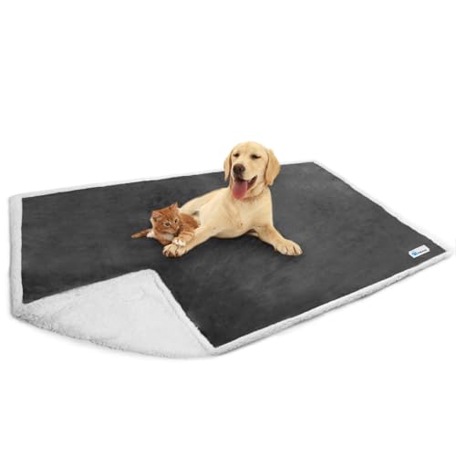 100% WATERPROOF & LEAKPROOF DOG BLANKET: This liquid leak free pee proof dog cat blanket is plush, soft, and warm.It is the easiest large, x-large pet blanket for on a regular basis use. We have reinforced our sherpa fleece blanket with a protective layer that stops any liquids, water, and urine from leaking from one side of the blanket to the other microfiber fleece side. The water resistant function of this dog blanket means your pet will stay moisture free, warm, and comfortable all over the day.