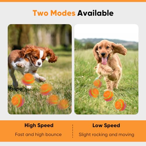 Two Mode Selection – Switch between two modes to suit different dog games. In high mode, the automatic moving bouncing ball moves and bounces quickly. A short press on the on/off button will switch it to low mode, with a view to on a regular basis result in a rhythmic roll across the floor. Low mode for indoor floors and high bouncing mode for thin carpets and outdoor lawns, suitable for different use scenarios.
