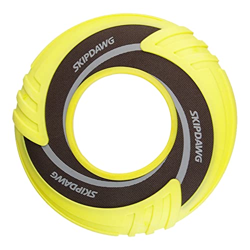 SAFE, LIGHTWEIGHT AND DURABLE: SKIPDAWG dog disc toy is made of high-quality TPR and strengthened with nylon fabric for added durability at the same time as maintaining its lightness, ready to resist the longest time of playing.