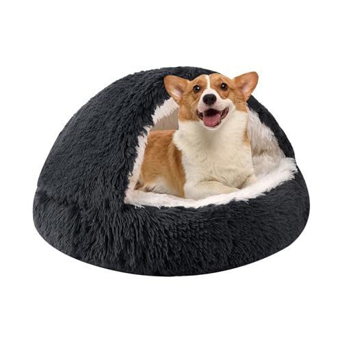 •   Small-Dog-Bed-Cozy-Cat-Cave-Bed-Cat-Beds-for-Indoor-Cats-Washable-Non-Slip-Cat-Beds-Calming-Dog-Bed-with-Hooded-Cover-Dog-Bed-with-Cover-for-Small-Medium-Pets-Dark-Grey-2020-Inch
