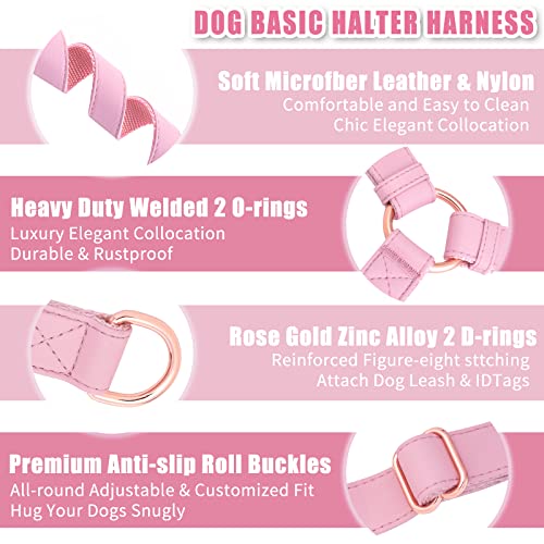 🐾 【Pick Eye-Catching Set For Your Pets】- Our Premium Harness has XS 130g / S 190g / M 290g / L 340g four sizes for male/female dogs, it’ll fit from puppy to big dog. Combination design of timeless Zinc Alloys Rose Gold Buckle & O-rings and Classy Leather makes it particularly Elegant. High-level appearance of this chic harness can instantly catch people’s eye and make your adorable dogs stick out from the crowd, get more praise. Welcome to browse Matching Collar and Leash Set in our shop.