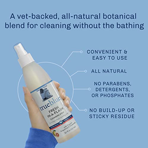 PREMIUM GROOMING SOLUTION: Whether you groom puppies and dogs professionally or in your home, you’ll need to pamper every poop with this TrueBlue Grapefruit & Chamomile Fresh-in-a-Flash Cleansing Dog Spray developed by veterinarians and expert botanists.