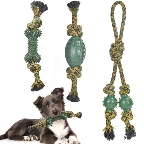 •   Vehomy-3-Pack-Dog-Rope-Toys-for-Aggressive-Chewers-Camouflage-Cotton-Rope-Dog-Toys-with-Rubber-Ball-Heavy-Duty-Dental-Dog-Chew-Toys-for-Large-Dogs-Tug-of-War-Interactive-Dog-Toy