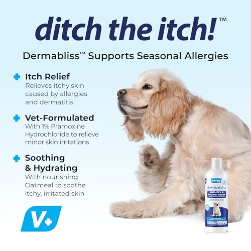 Vetnique Labs Dermabliss Dog Allergy and Itch Relief, Skin and Coat Health Supplements and Grooming Supplies with Omega 3-6-9, Biotin – Ditch The Itch (Itch Relief, 16oz Shampoo)