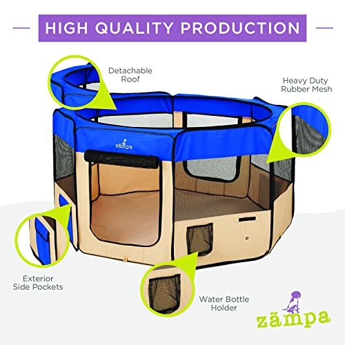 What To Expect From Zampa: Playpen, mesh top to zip on when needed, 4 metal spikes for outside safety, carrying case, and a commitment from our customer service team. Please do not hesitate to contact our customer service and BARK, we can make it right.